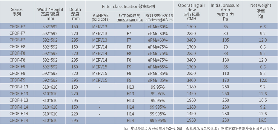 框架可提供箱式、单法兰式、双法兰式;并依据EN1822逐台测试;