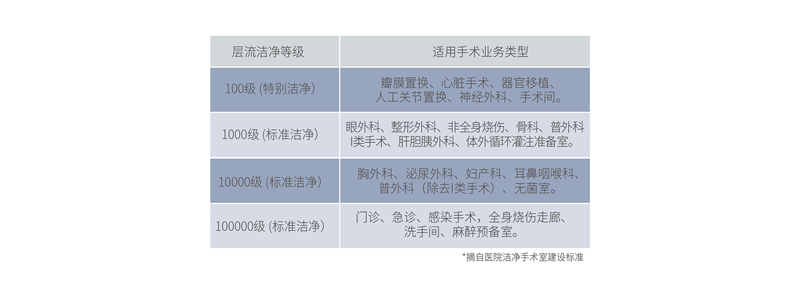 乐鱼网洁净医疗系统空气净化解决方案包括手术室层流净化、手术室空气过滤、ICU病房空气净化、传染病房空气净化、传染病房排气过滤、无菌病房空气净化、静脉配置中心空气净化等等,涵盖新建和改造升级。净化的基本方式是:室外空气通过气流通道时进行初中高效多级过滤,使空气品质达到GB50333-2013规定的洁净等级,以满足手术、康复治疗的需要。